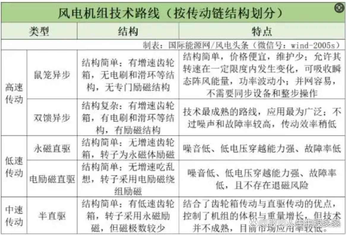 半直驱永磁同步发电机属于中速风机,结合了以上两种类型的优点。它的齿轮箱的结构大大简化。同时,它又不需要直驱机组那么多磁极数,从而保持机组重量在合理范围内。国内整机商中,【明阳智能】是最早开始笃定选择半直驱的整机商。