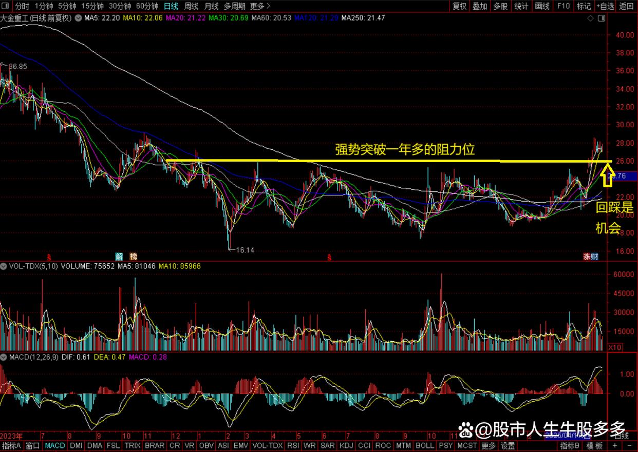 通过以上公司业绩变化看,风电板块复苏比较明显,确实有必要重点关注。但是即便行业复苏,也不是板块所有公司都大涨,因此还是需要密切关注走势最强的龙头,目前最强的肯定是【大金重工】。该公司在欧洲的订单比较强劲,基本国内景气度不如预期,也有增长潜力,这是大资金敢于上车的重要原因。