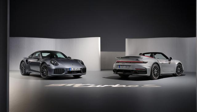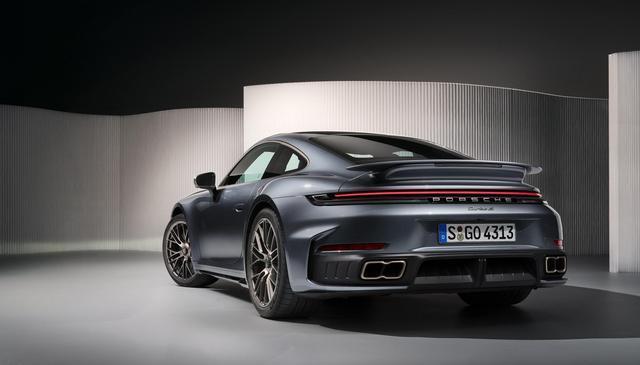 外观方面,新款 911 Turbo S 延续家族经典流线型车身,同时加入细节调整。前脸进气格栅尺寸微调,内部蜂窝状结构搭配熏黑处理要配资,搭配两侧造型更锐利的 LED 大灯,灯组内部光源布局优化,点亮后辨识度更高。车身侧面保留标志性溜背造型,轮毂升级为 21 英寸轻量化运动轮毂,轮毂样式更具攻击性,同时侧裙加入细微空气动力学套件,提升行驶稳定性。车尾部分,自适应后扰流板调节范围优化,可根据车速更精准调整角度,双边共四出排气布局采用熏黑尾喉设计,搭配贯穿式尾灯,整体运动氛围较老款更浓郁,敞篷版则保留电动软顶敞篷结构,敞篷开启时间与老款保持一致,兼顾实用性与格调。