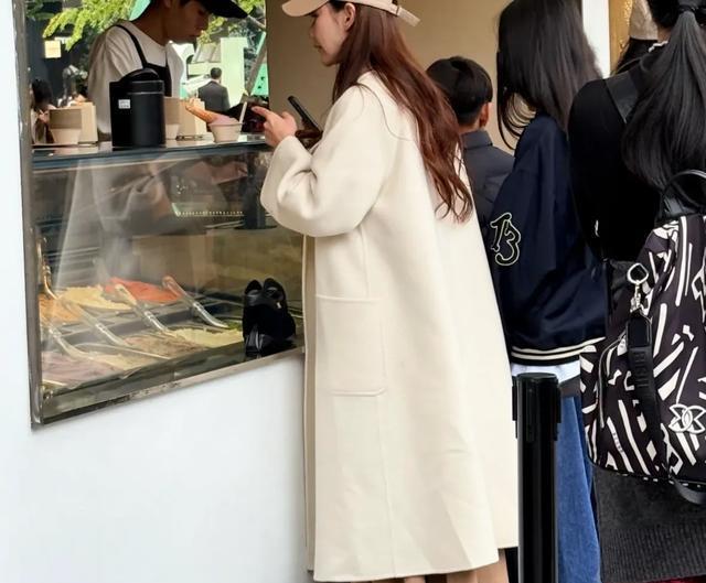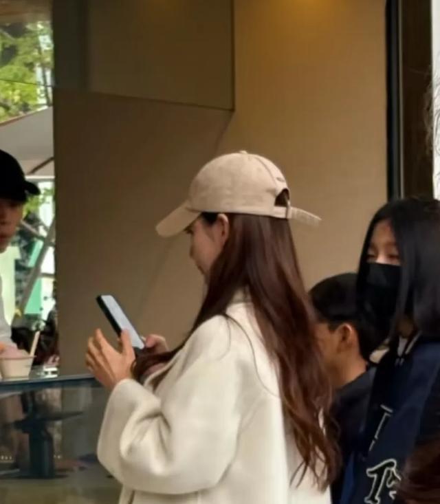 这是一家冰激凌店,穿着白色大衣戴着棒球帽的就是马筱梅,跟在身边的是汪小菲的两个孩子,汪希玥和汪希箖。