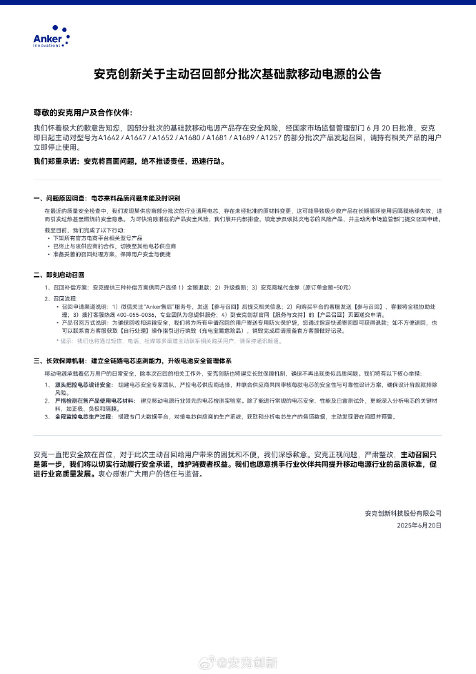安克召回部分批次基础款移动电源安克召回部分批次基础款移动电源