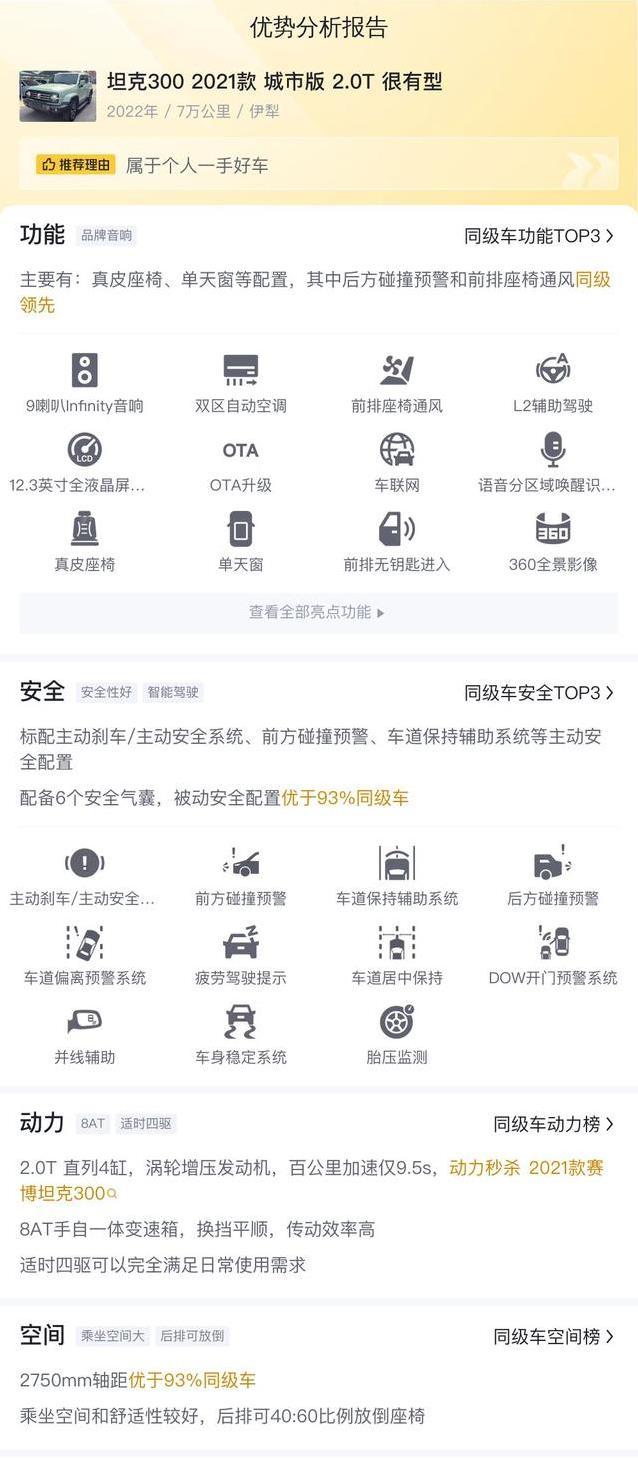 买二手车,很多人担心会不会踩坑。其实,只要多留个心眼,比如查查维修记录,试试车况,基本没啥大问题。坦克300的保值率在同级别车里算高的,开个几年再卖,也不至于亏太多。况且,这车的设计和性能,放在现在还是能打,买来开个三五年,照样不落伍。