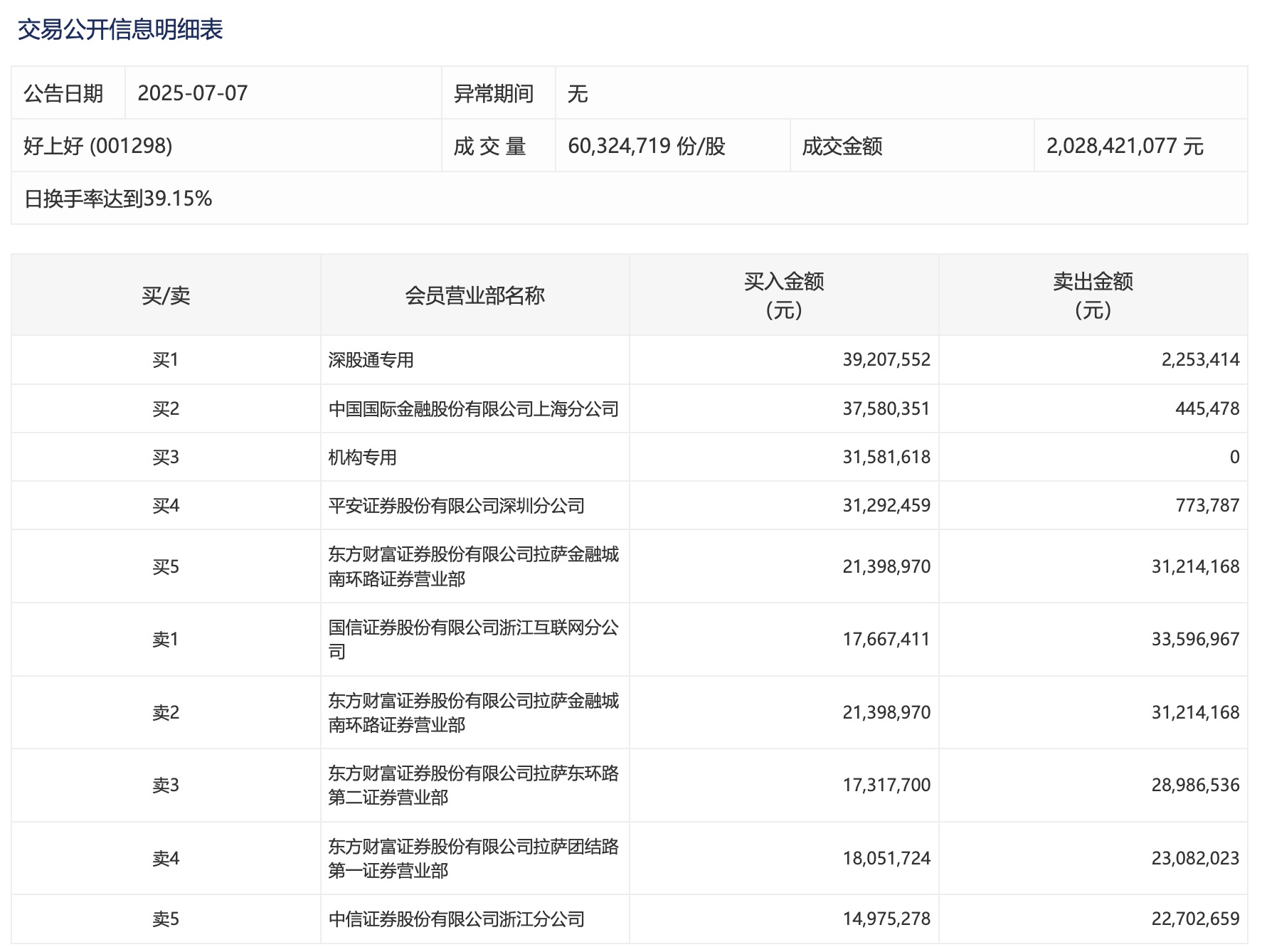 好上好今日跌5.14%聚创优配,1家机构专用席位净买入3158.16万元好上好今日跌5.14%,1家机构专用席位净买入3158.16万元