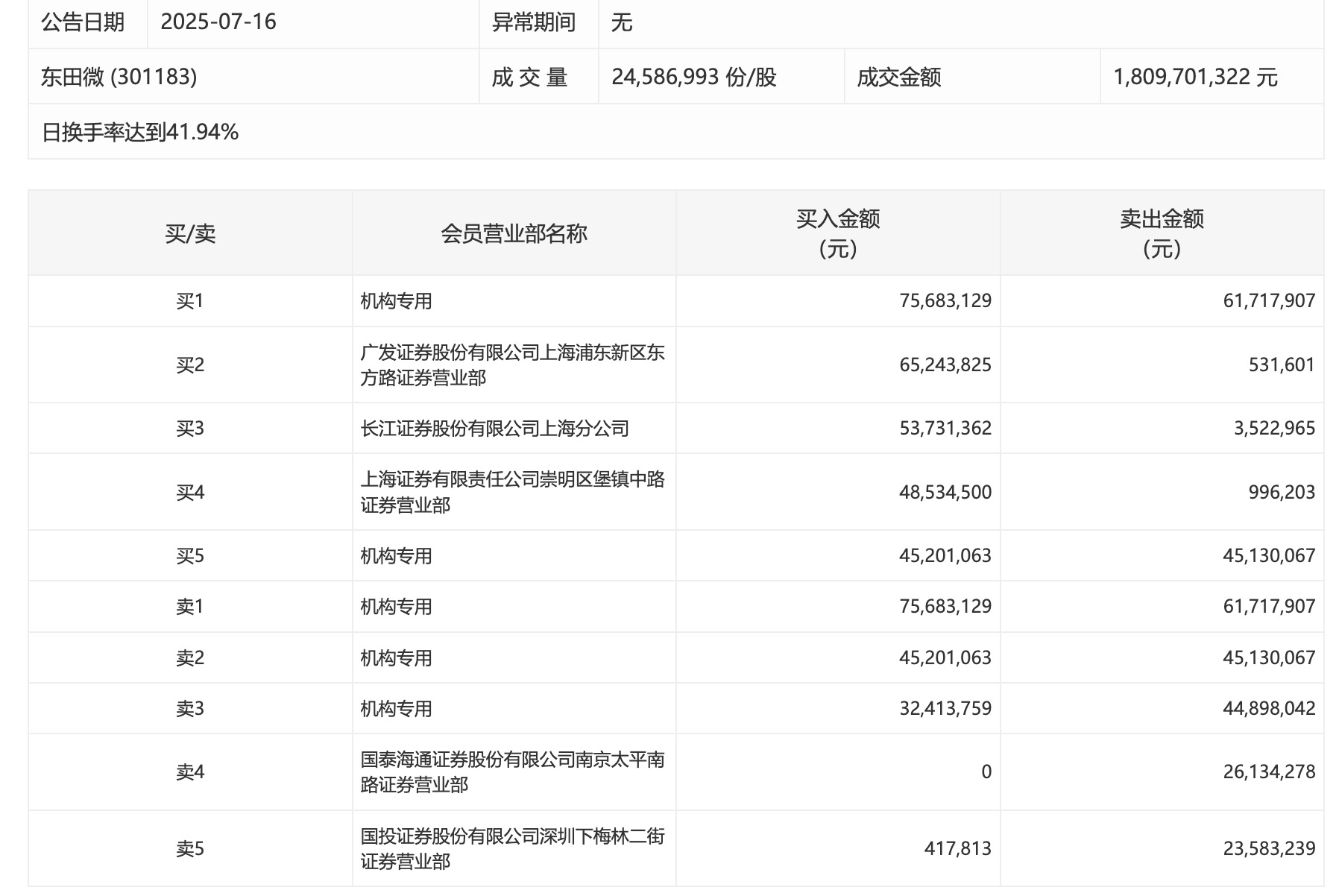 东田微今日涨9.58% 二机构专用席位净买入1403.62万元东田微今日涨9.58% 二机构专用席位净买入1403.62万元